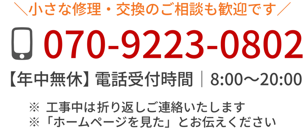 住宅設備全般対応可能です。お気軽にお問い合わせください。