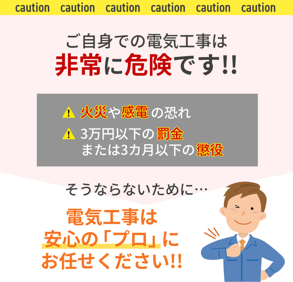 【作業中のトラブルにも万全の保証体制】電気工事士資格、都道府県知事登録業者、請負賠償保険加入済み