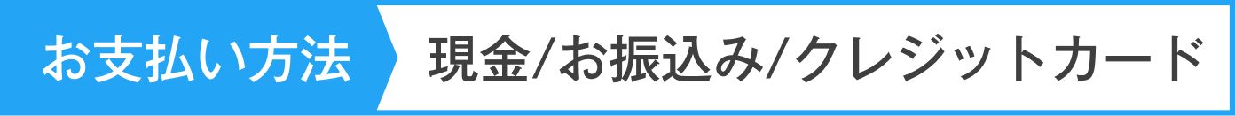 お支払いは現金、お振込み、各種クレジットカードをご利用いただけます。
